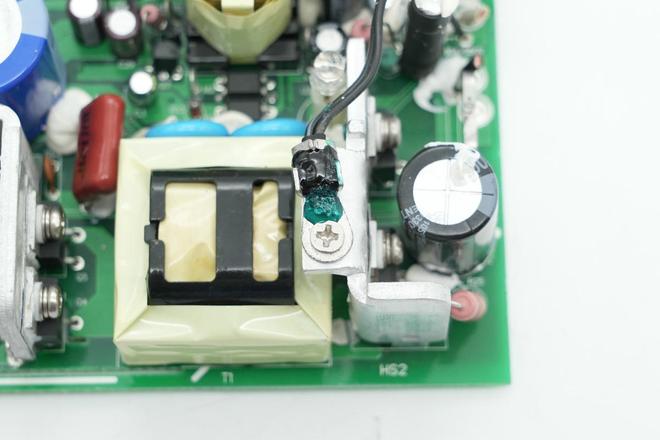 PCBA模块输出端设有滤波电容,检流电阻,保险丝,Y电容。其中保险丝和Y电容外套热缩管绝缘。