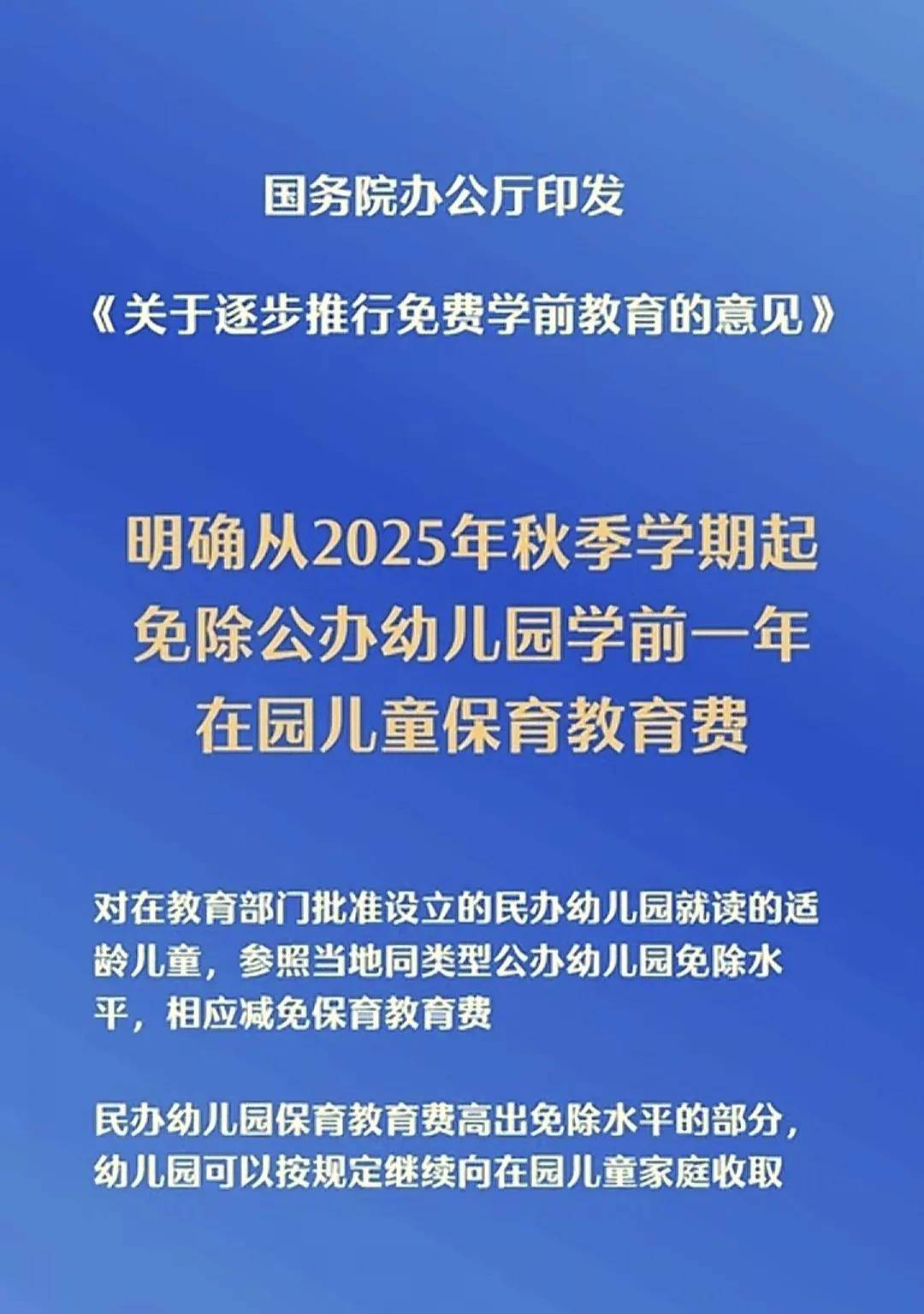 从2025年8月份开始,学前班全部免费。这其实也发出了一个信号,以后孩子上幼儿园估计也可以免费了。