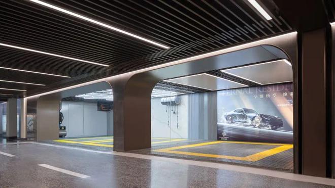 ,在地库、电梯多处使用星空顶元素,大堂背景选用更有质感的亚马逊绿岩板,每一处细节都有氛围感的细细考量。